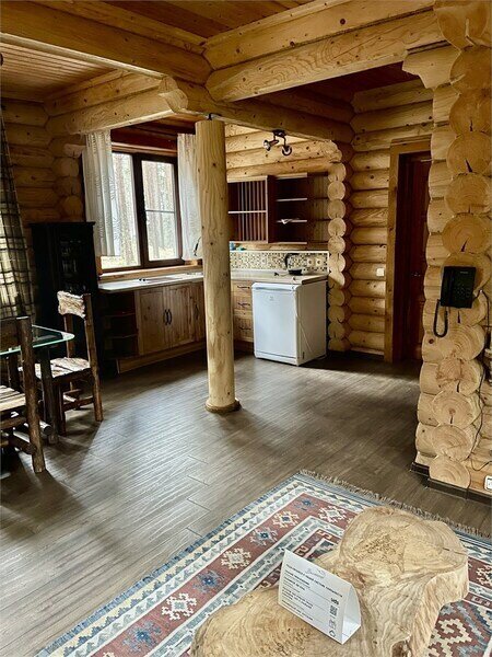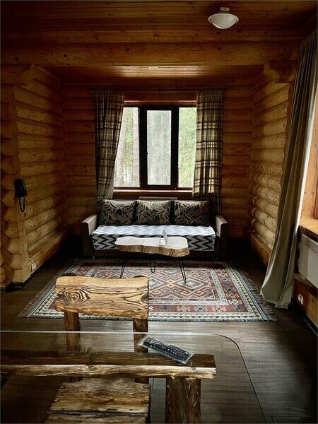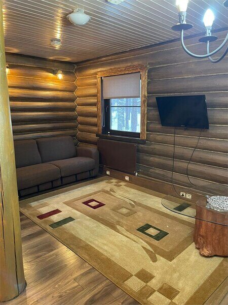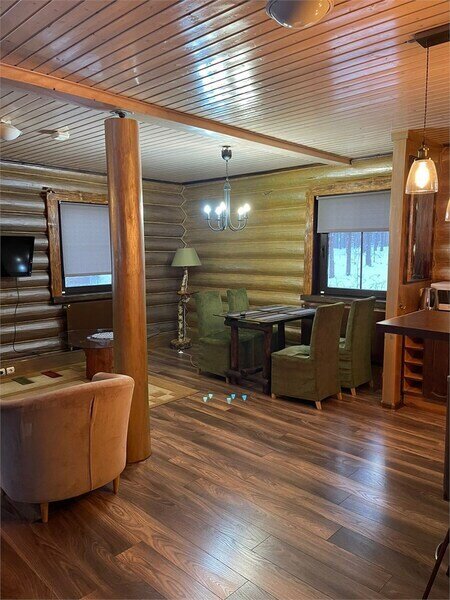 Просторный двухэтажный бревенчатый коттедж находится на удаленном расстоянии от остальных домов. Предназначен для комфортного проживания семи человек.