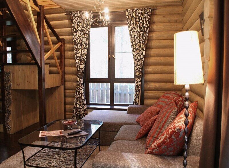 Двухэтажные бревенчатые коттеджи предназначены для комфортного проживания четырех человек.