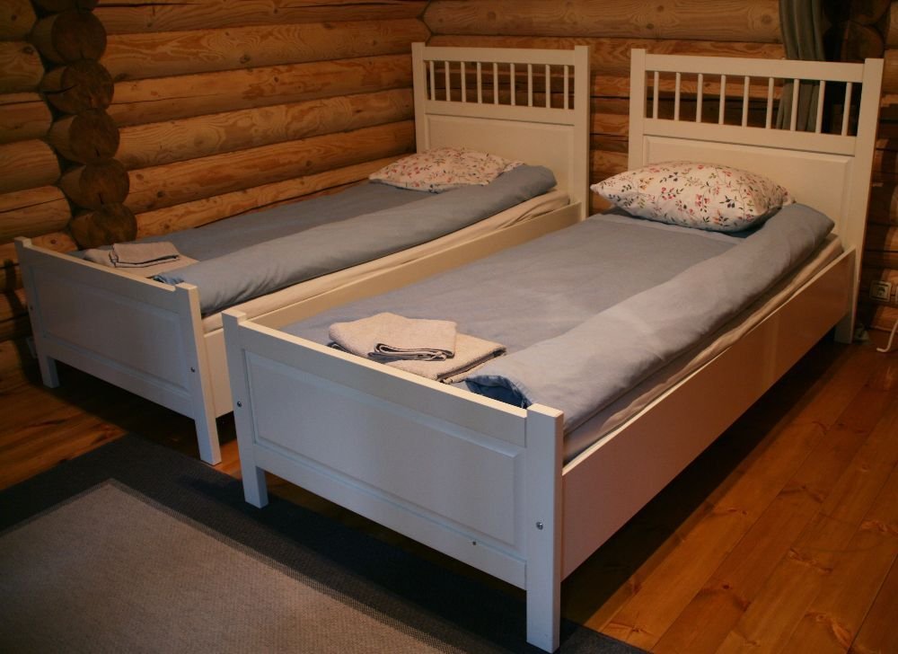 В одной спальне большая кровать, во второй две односпальные кровати. На счёт спален вопросов нет, всё очень комфортно. На 2-м этаже, кстати, не влажно и спать с открытыми окнами в лесу потрясающе.