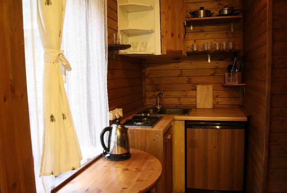 Вы сможете остановиться в одной из коттеджей или в двухэтажном деревянном здании гостиничного комплекса. Номера оснащены всем необходимым для комфортного проживания.