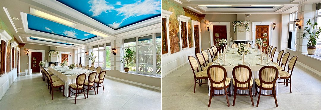 Удачное место для проведения любого торжества, дружеского дня рождения или камерной свадьбы. При банкетной посадке в этом зале размещаются до 40 гостей.