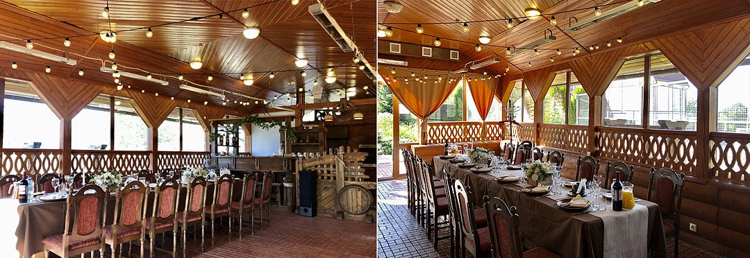 Короткий отпуск с друзьямиНаш праздник удался!Отмечали нашу свадьбу с семьей и друзьями в этом бизнес-комплексе 16 сентября 2018 г. Если честно, изначально одним из основных мотивов, почему мы остановили свой выбор именно на Ю-Питере, было хорошее ценовое предложение и бонусы, которые нам сделали из-за того, что праздник мы устраивали в воскресенье. Свадьба была относительно немноголюдной, поэтому найти подходящее место по доступной цене в городе было практически невозможно. После поисков зала в Твери, мы все же решили поехать и посмотреть на месте, что из себя представляет ресторан бизнес-комплекса. И хорошо, что поехали сами, потому что те фотографии, которые имеются в сети дают совершенно иное представление о нем: территория ухоженная, хоть и довольно компактная, несколько площадок, ресторанный комплекс с неплохим интерьером (что маленький, что большой зал). Хорошее впечатление произвела администратор на ресепшене и Максим - управляющий (?), с которым после оформления заказа мы работали над организацией нашего торжества. Свадьбу для себя мы организовывали сами, поэтому помощь сотрудников Ю-Питера на всех этапах подготовки праздника для нас была очень важна и нужна. В итоге за приемлемую сумму мы получили номер в коттедже, где смогли подготовиться к фотосессии, которую и провели перед торжеством на территории комплекса (и пусть Вас не пугают компактные размеры территории, профессиональный фотограф найдет нужные ракурсы, чтобы сделать для Вас красивые снимки), организованный фуршет в нижнем зале ресторана на время встречи гостей и фотосессии с ними, банкет с обслуживанием в верхнем зале ресторана, вкусную еду, замечательную атмосферу праздника. Отличное настроение и самые хорошие впечатление от свадьбы остались и у наших гостей. Комплиментом от заведения был трансфер для гостей после окончания мероприятия. Мы же были освобождены от всяких хлопот на время праздника. Утром проснулись с отличным настроением, позавтракали в кафетерии и, нагруженные яствами и букетами цветов, поехали домой^^ Перед бронированием даты было много сомнений, но мы очень рады, что мы им не поддались и провели наш праздник именно здесь!