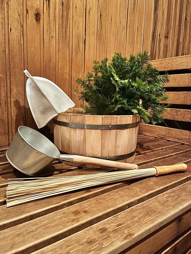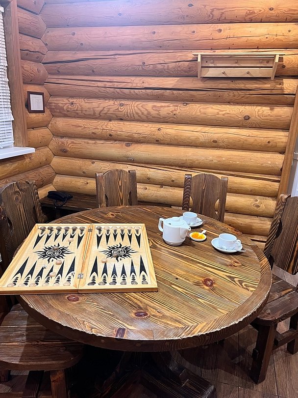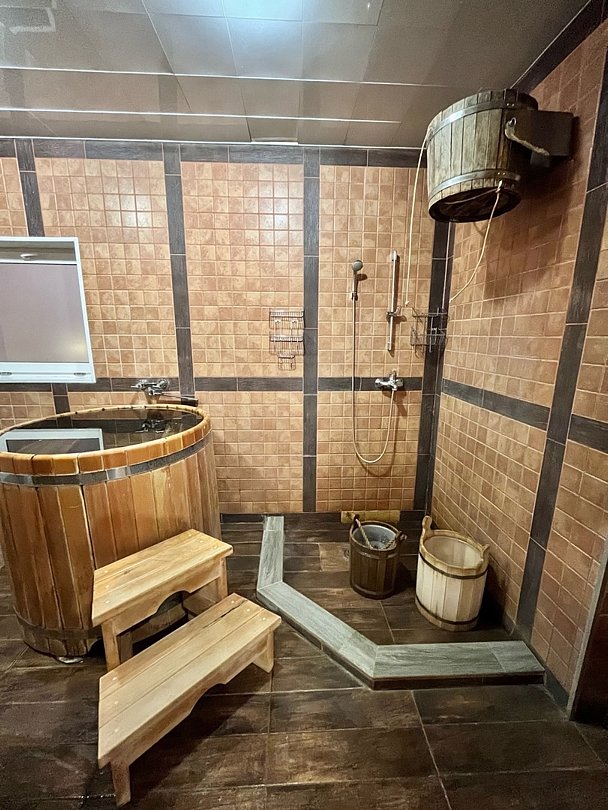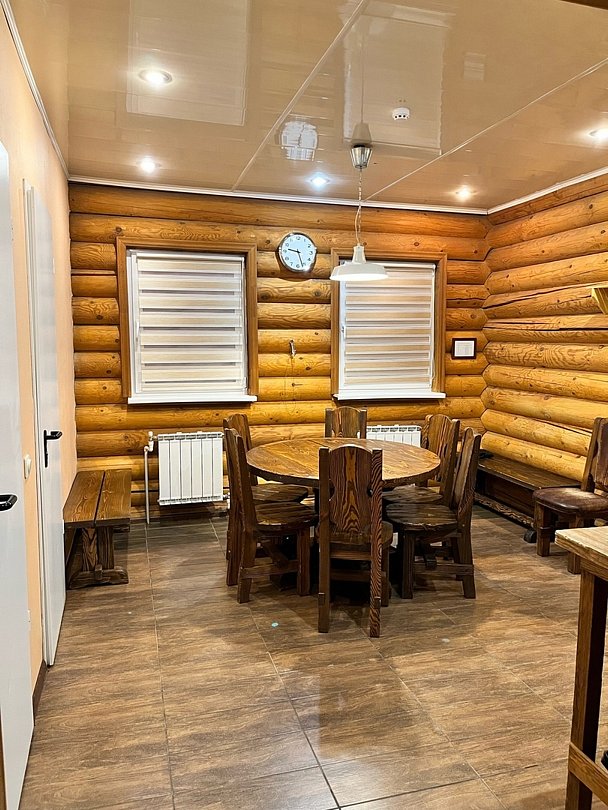 Баня располагает всем необходимым: вместительной парной, купелью из натурального кедра, обливными устройствами, душевыми, раздельными комнатами-раздевалками для мальчиков и девочек, уютной комнатой отдыха с круглым столом.