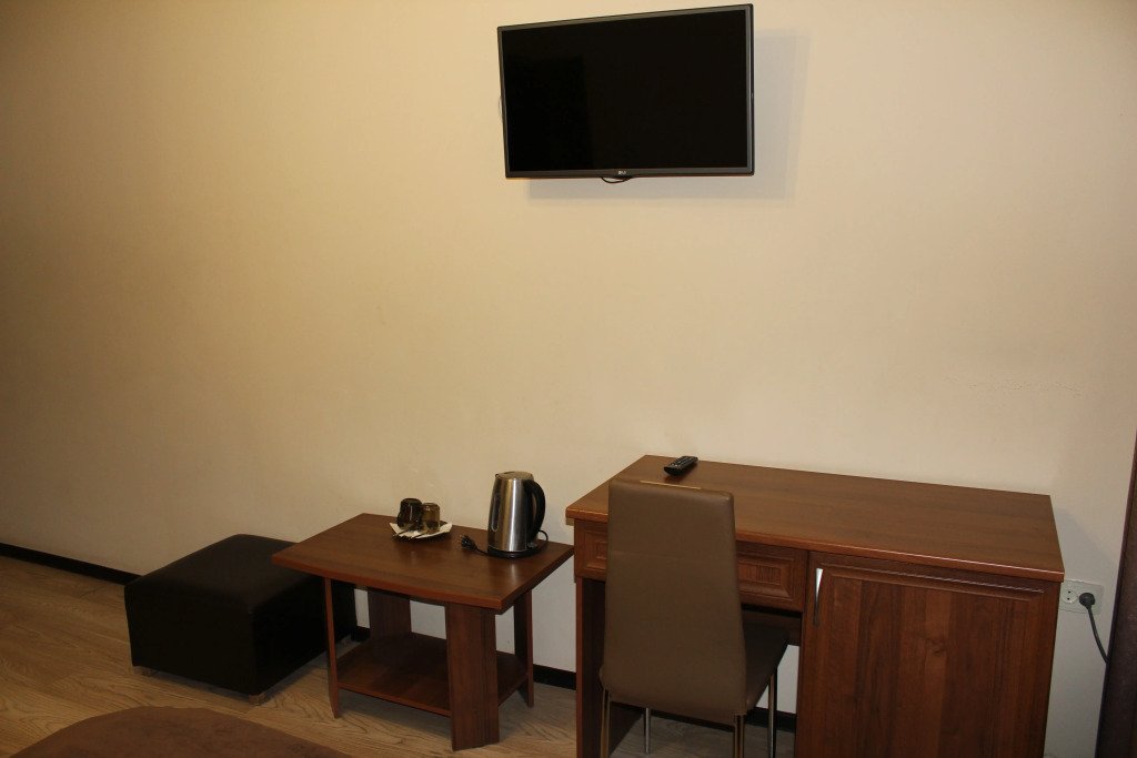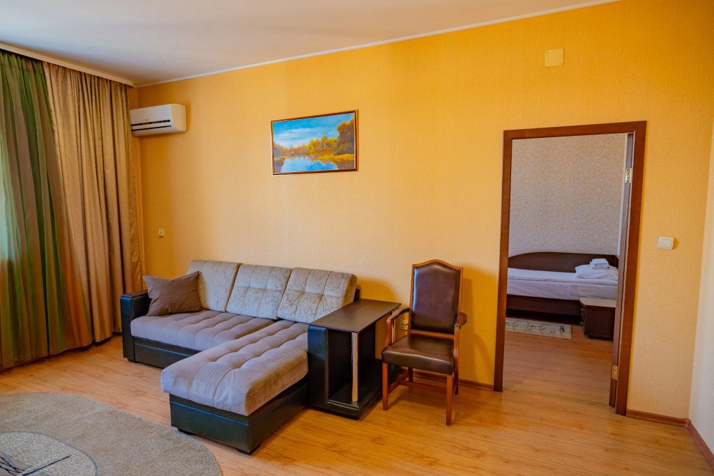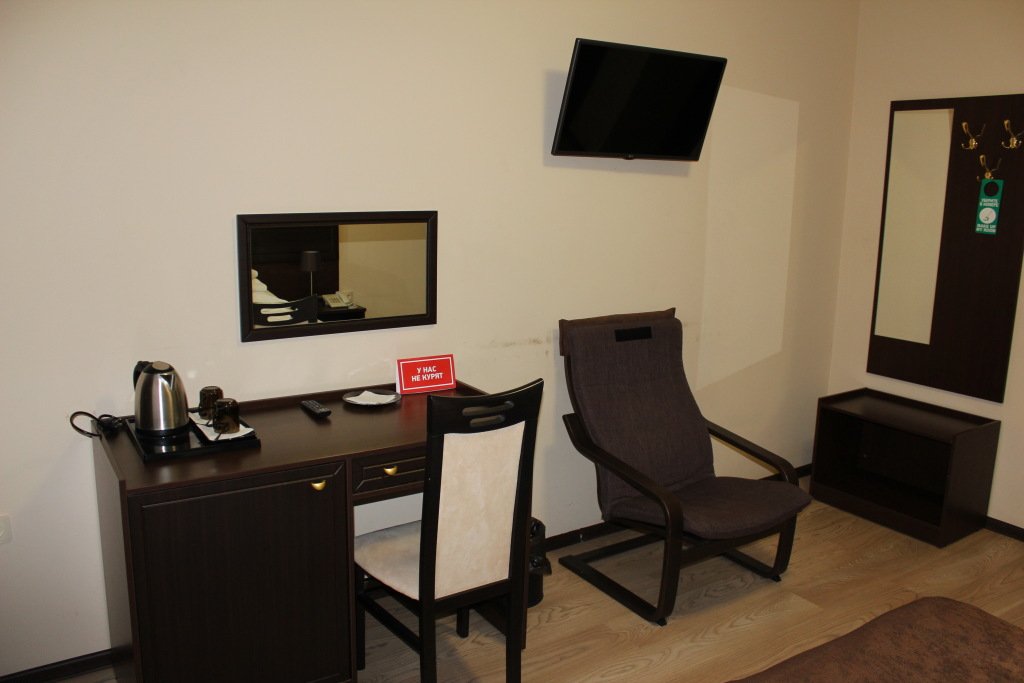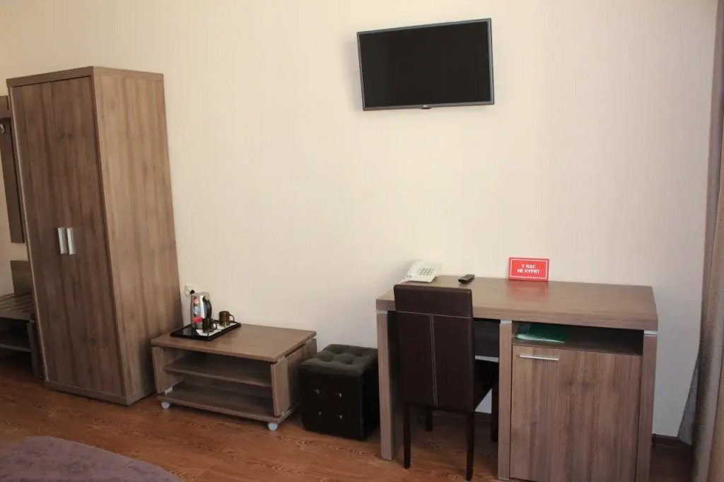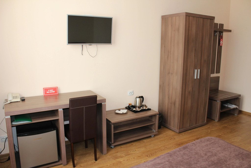 Номера оснащены необходимым для проживания: мебель и сантехника, плазменный телевизор, телефон, кондиционер, холодильник. Гостям предоставляются тапочки, фены, банные принадлежности.