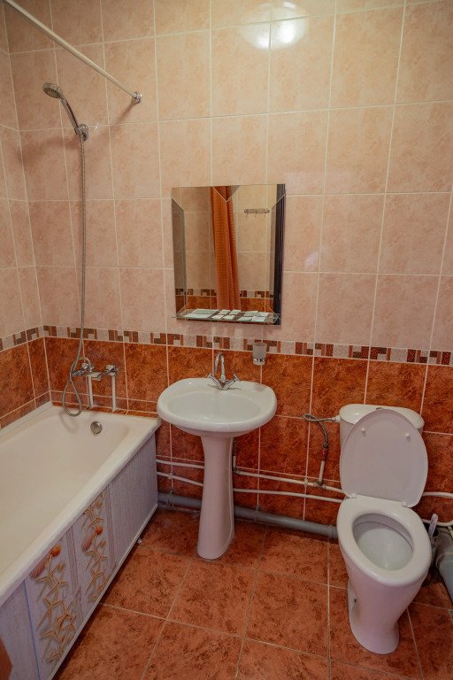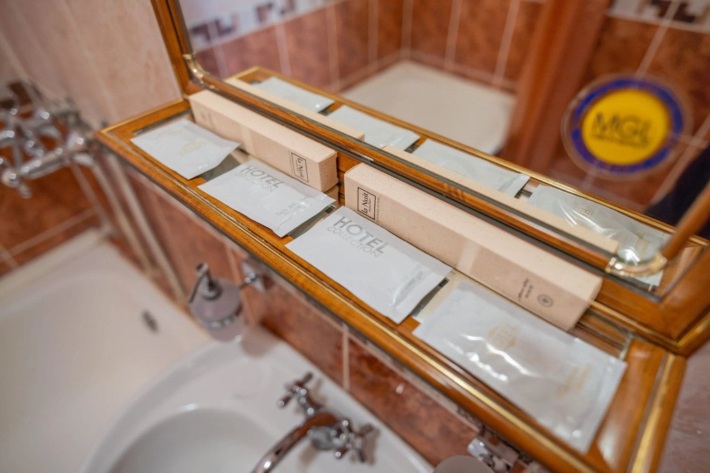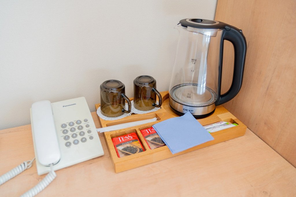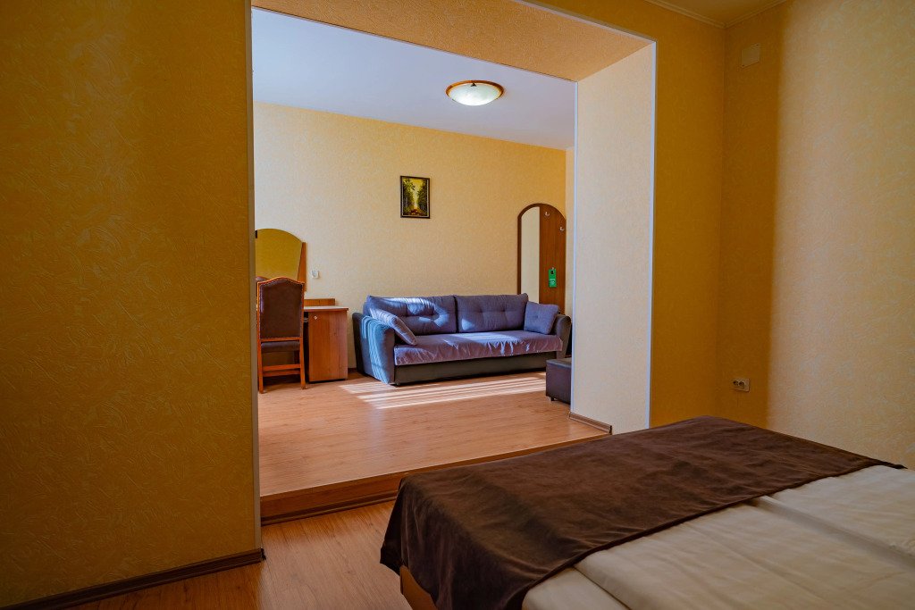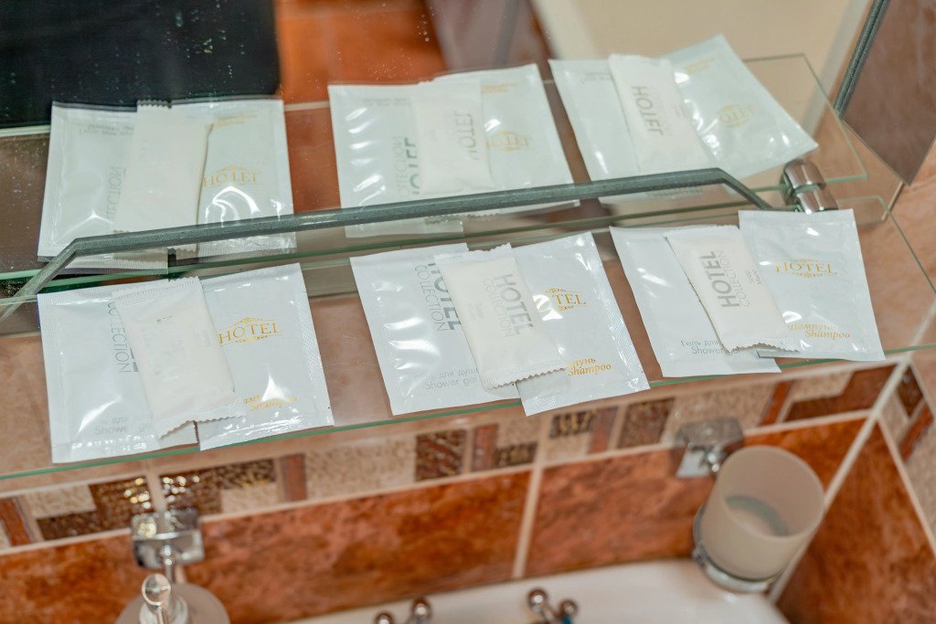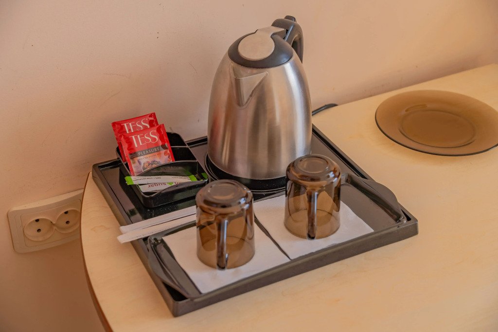 Номера оснащены необходимым для проживания: мебель и сантехника, плазменный телевизор, телефон, кондиционер, холодильник. Гостям предоставляются тапочки, фены, банные принадлежности.