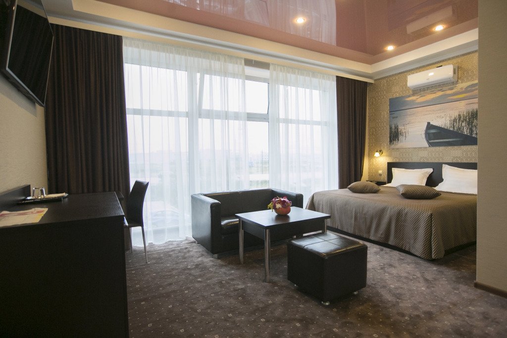 В номере вы найдёте телевизор и халат. Оснащение зависит от выбранной категории номера.
