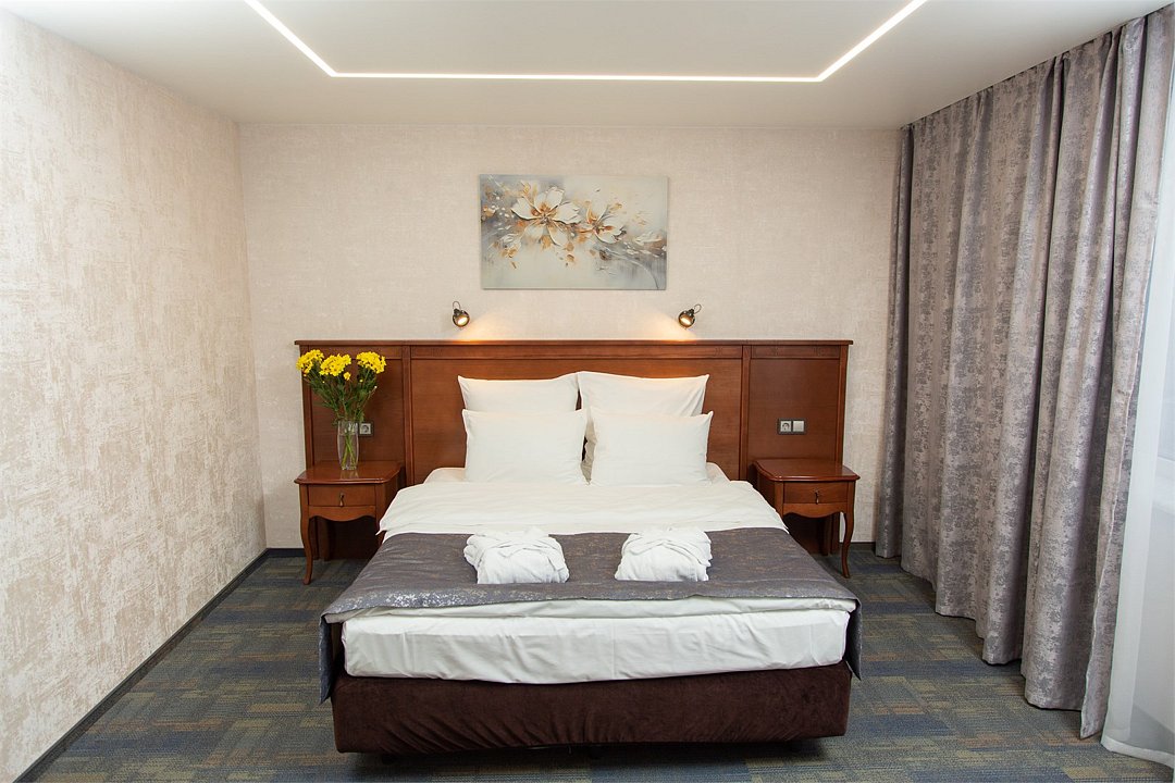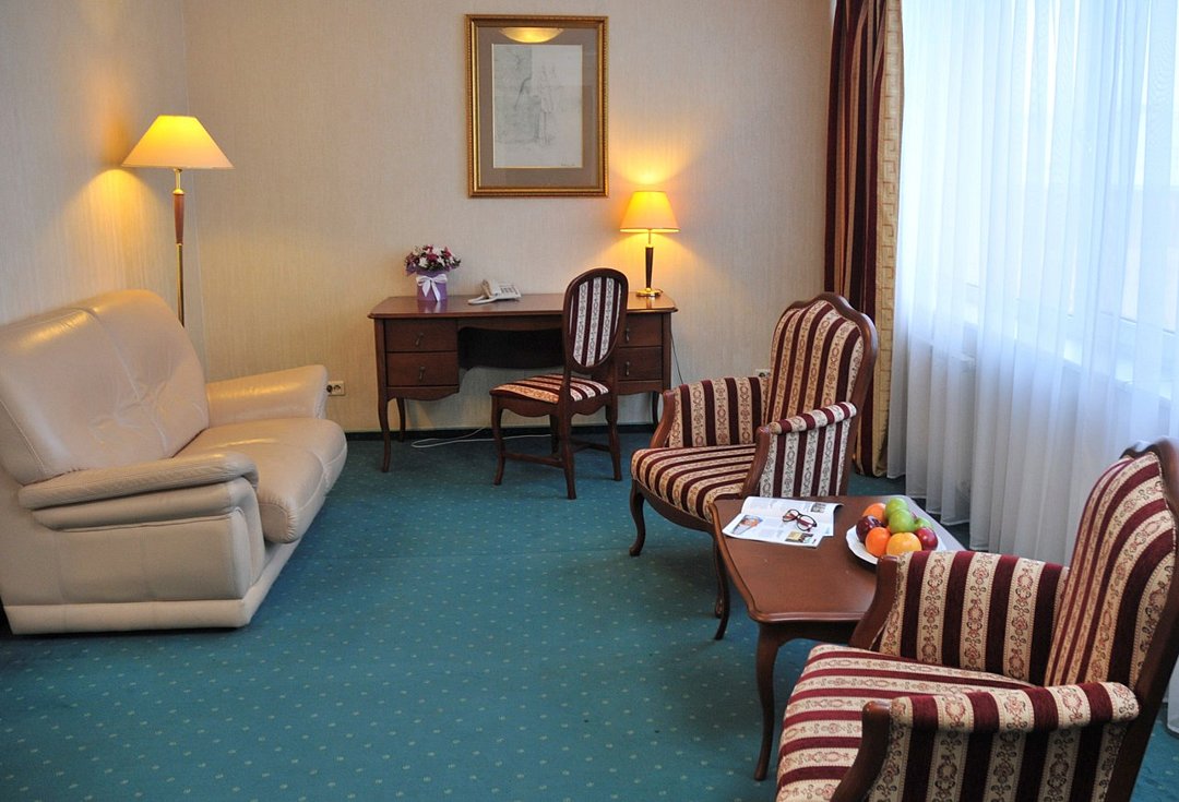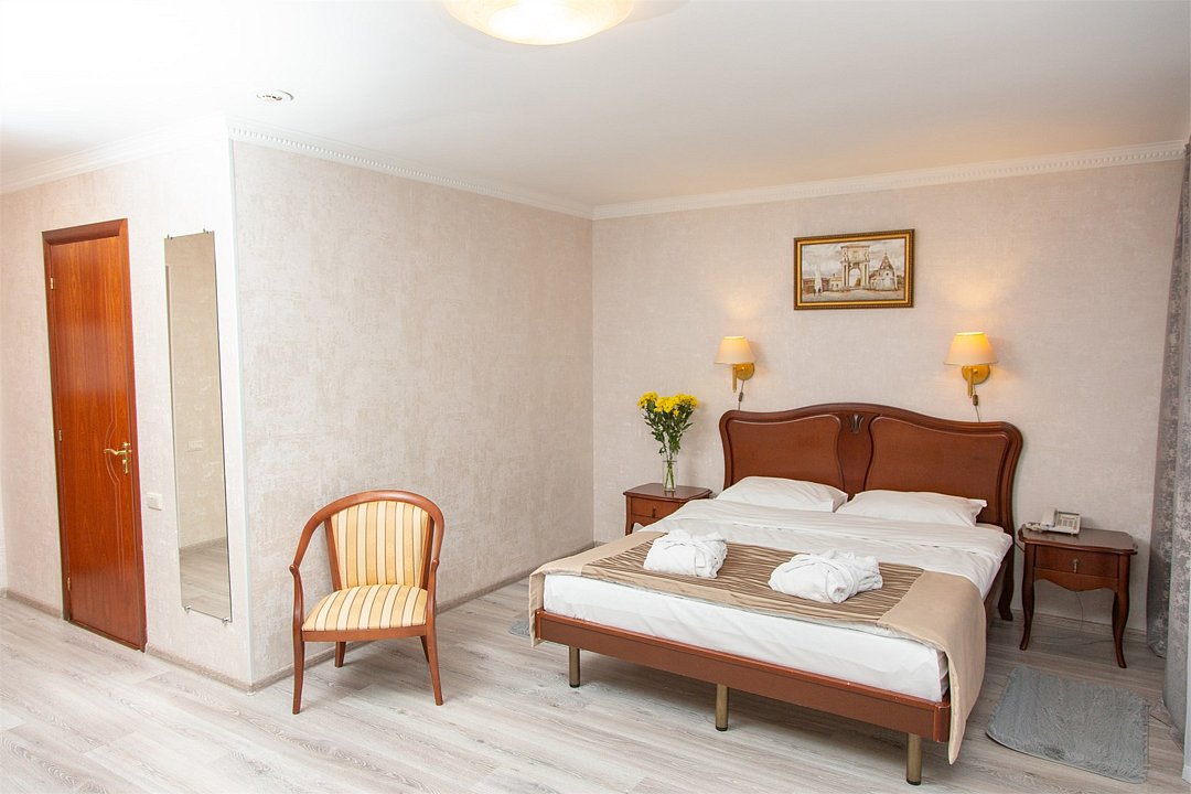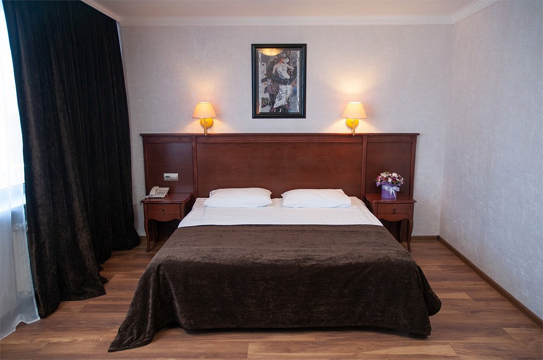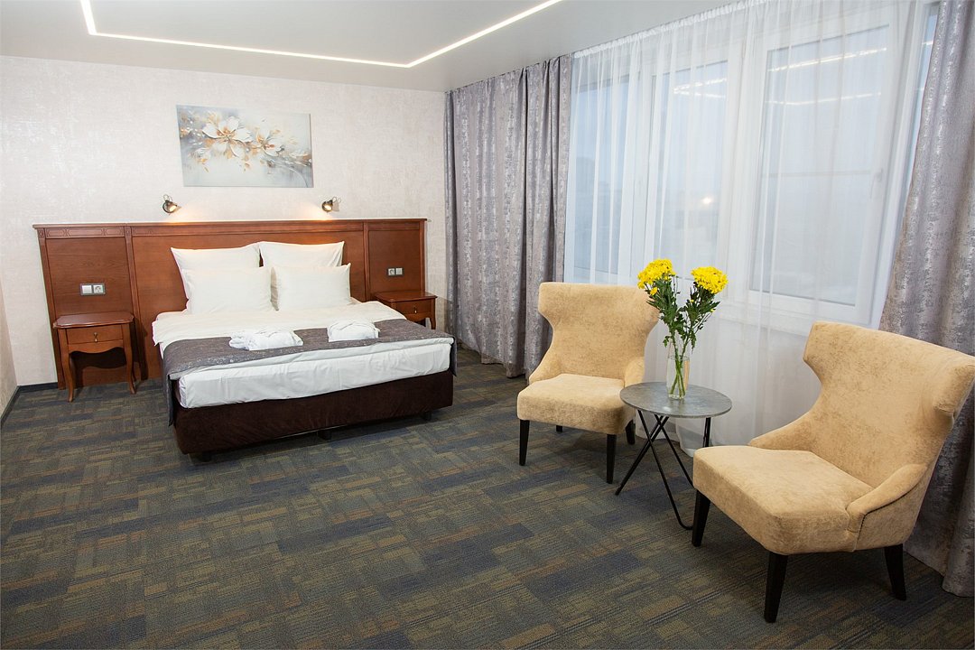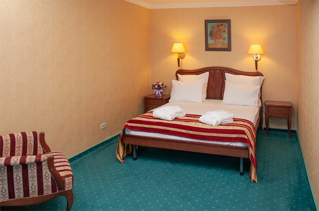 Просторные однокомнатные номера оснащены всем необходимым для комфортного пребывания: большая кровать – трансформер, сейф, рабочий стол, плазменный телевизор с кабельным телевидением, система кондиционирования, бесплатный Wi-Fi доступ в интернет, ванна, фен, туалетные принадлежности, телефон, услуга "звонок-будильник", платный мини –бар. Гостям предоставляется бесплатная, охраняемая парковка.Услуги и удобства