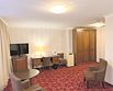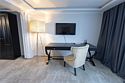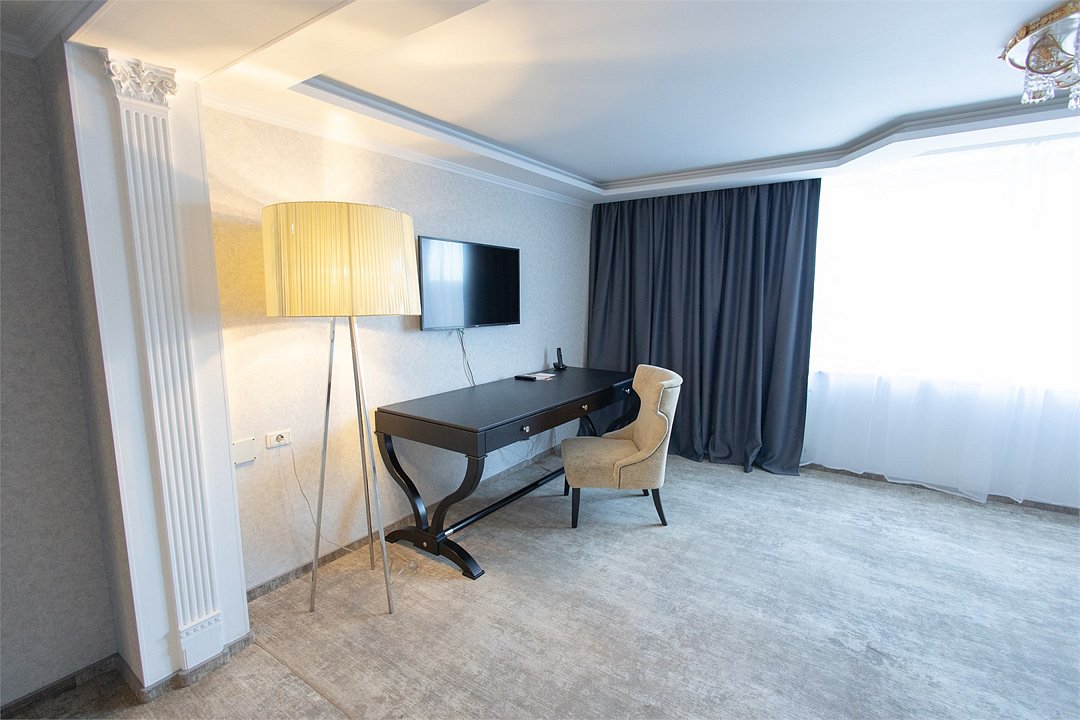Комфортабельный трёхкомнатный номер, состоящий из спальной зоны с большой кроватью, гостевой зоной с диваном и отдельной комнатой для отдыха. В номерах категории «Трёхкомнатный Люкс» есть всё необходимое для комфортного пребывания: мягкая мебель, обеденный стол, жк телевизор, система кондиционирования, рабочий стол, шкаф/гардероб, телефон, сейф. Халат, тапочки. Чайный и кофейный наборы, мини-бар, комплиментарная питьевая вода. Ванная комната с возможностью принятия ванны, либо душа. Фен, расширенный набор косметических принадлежностей.Услуги и удобства
