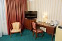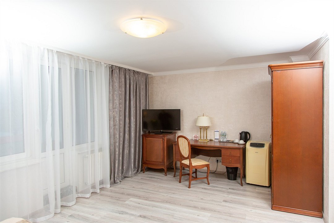 кабельное телевидение, Wi-Fi, телефон, кондиционер, фен, ванная комната, ванна, тапочки, косметические средства, балкон, двуспальная кровать, две односпальные кровати, шкаф для одежды, вешалки, письменный стол, зеркало, сейф, унитаз, раковина, вид на город, кулер на этаже, вид во двор, стул, тумба, телевизор с плоским экраном, мини-холодильник, номер для некурящих, чайная станция, бутилированная вода, мини-бар (платно), шапочка для душа, мылоВ гостиничном номере