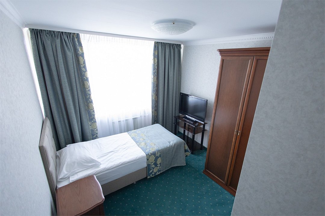 Однокомнатный номер расположен на 7 этаже гостиницы "Калуга". В номере предусмотрено всё для комфортного проживания: большая двуспальная кровать, cейф, рабочий стол, мягкий диван, плазменный телевизор с кабельным телевидением, вместительный шкаф/гардероб, бесплатный Wi-Fi доступ в интернет, ванная комната с душевой кабиной и набором косметических принадлежностей, фен, телефон, услуга "звонок-будильник", платный мини–бар. Гостям предоставляется бесплатная охраняемая парковка.Услуги и удобства