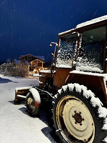 Зимой на территории агроусадьбы заливают горку для ватрушек и салазок.
