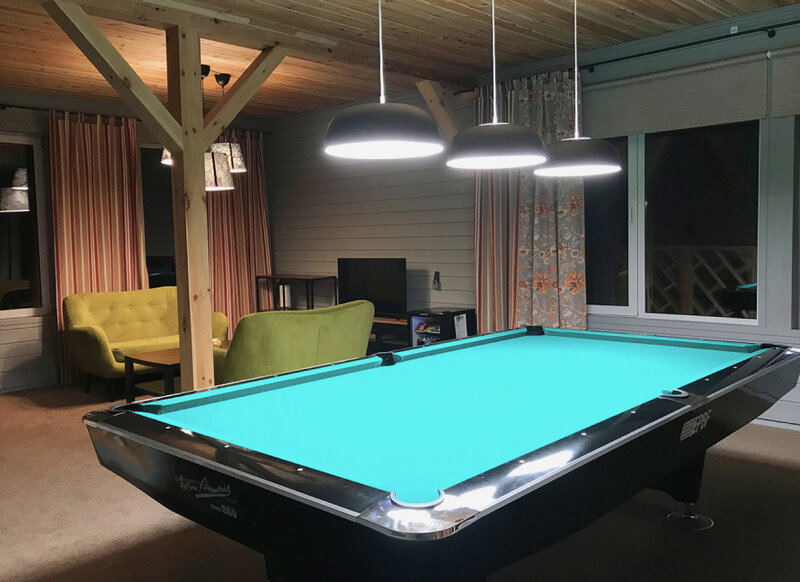 Для размещения можно выбрать любой из тёплых домиков на поляне или берегу реки, в каждом из которых предусмотрены все необходимые для проживания удобства.