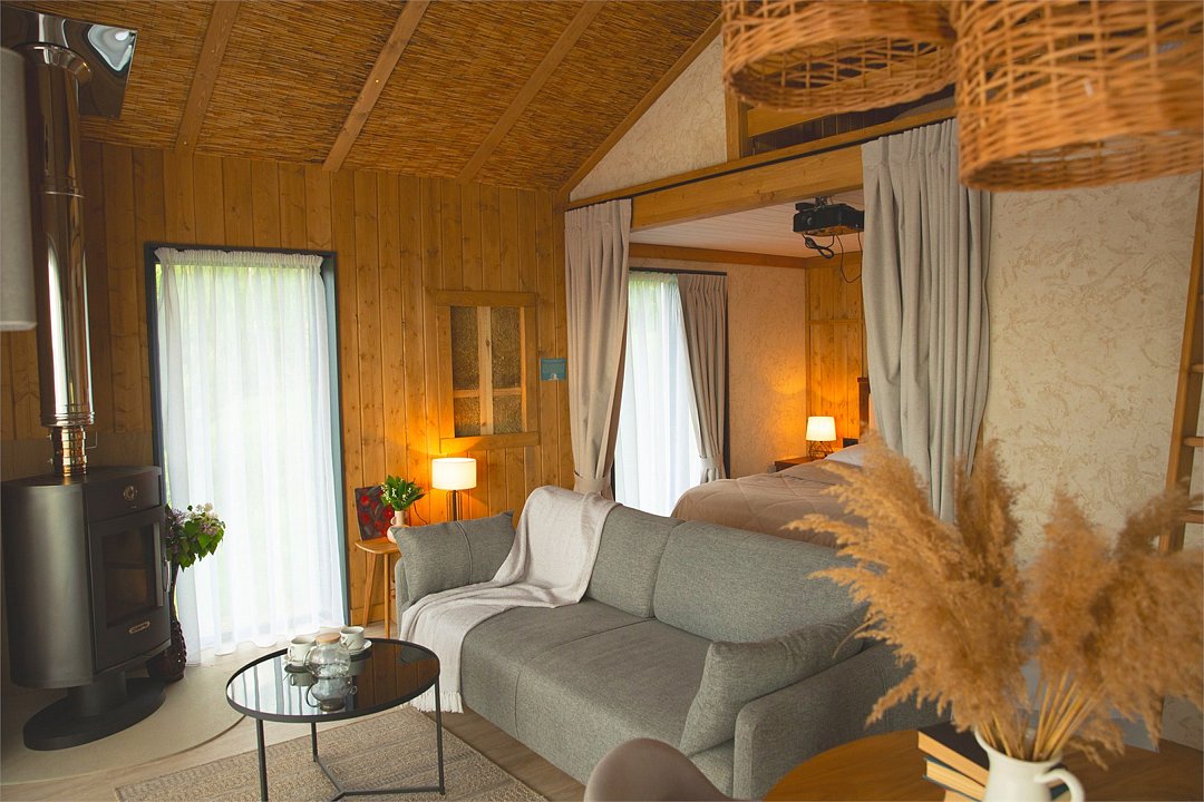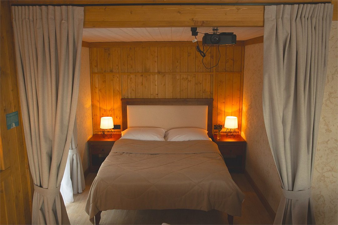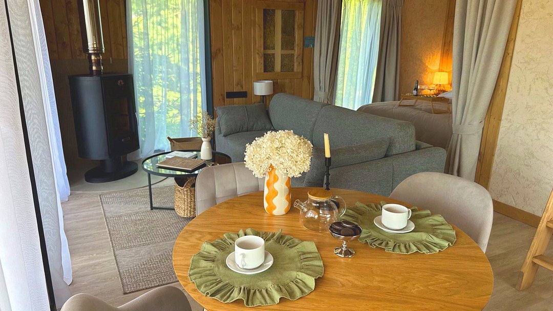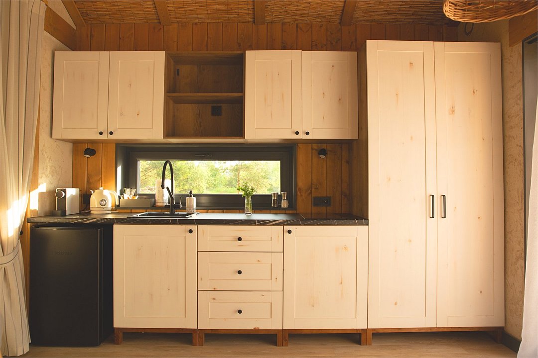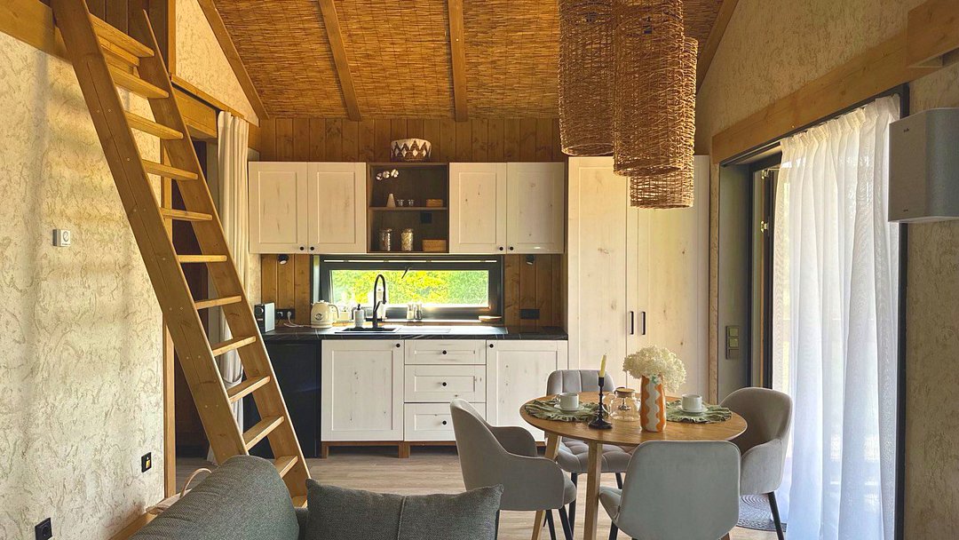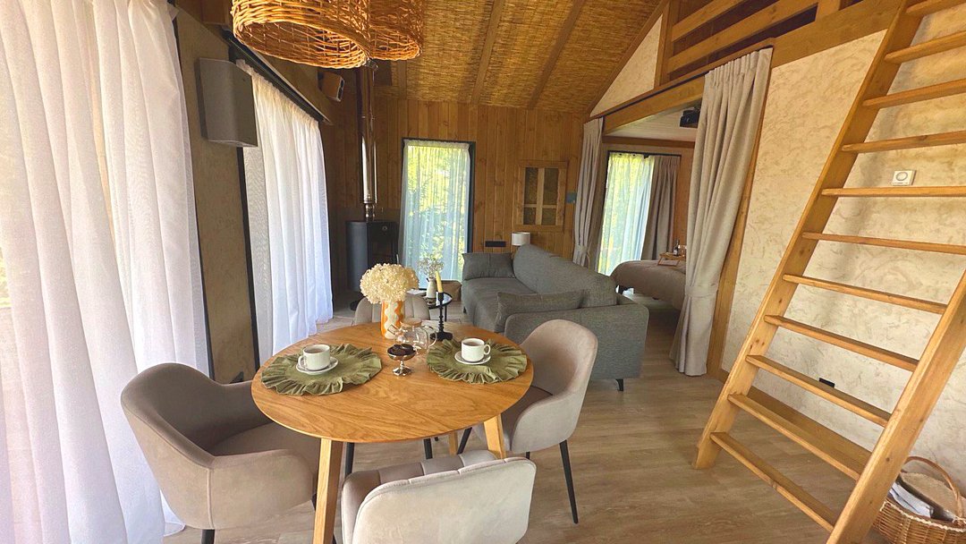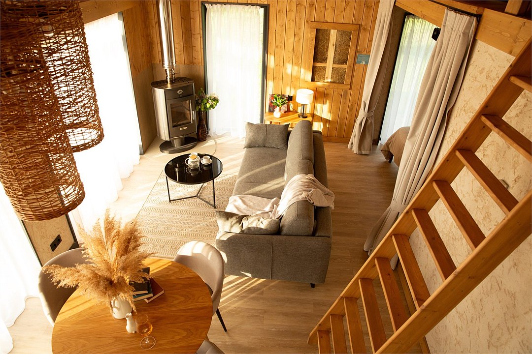 Эко-дом "Романтик" с шикарным видом на Волгу из панорамных окон. Здесь вас ждёт круглосуточная горячая купель под звёздами и уютное «гнёздышко» на втором этаже — кровать с мягкими пледами, где так приятно засыпать под треск дров в печи-камине. В подарок для влюблённых — романтический welcome-набор со сладостями и игристым. Проживание с животными запрещено. Около эко-домика нет мангала общего пользования, вы можете привезти переносной мангал с собой. Каждая деталь в нашем доме продумана до мелочей: панорамные окна с видом на Волгу, теплые полы, удобные ортопедические матрасы, печь-камин для теплой атмосферы. На террасе с мебелью можно наслаждаться свежим воздухом и природой, а проектор с экраном добавит уютных моментов во время вечернего кино. А еще в каждом домике своя кухня, оснащенная всем необходимым: индукционная плита, капсульная кофемашина, небольшой холодильник.Услуги и удобства