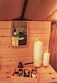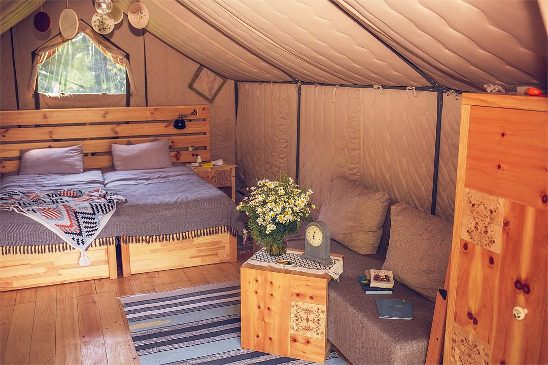 Большой и комфортный домик с видом на Волгу, в котором свободно себя чувствуют до 4 человек. Домик выполнен из утепленного дышащего материала: летом в нем свежо, а зимой — тепло, т.к. стоит регулируемый круглосуточный обогрев до +31С. Внутри вы найдете все необходимое для беспечного отдыха: гардеробный шкаф, комфортные кровати с электропростынями, двухместный диван, холодильник, турка, кухонные и гигиенические принадлежности, обогреватель и биотуалет. Рядом с каждым домиком есть мангальная площадка и садовая мебель — вся территория в вашем распоряжении. Здание с туалетами и тёплым душем расположены в шаговой доступности от домика. У нас 7 душевых кабин с санузлами, по одной кабинке на два домика. В здании установлены теплые полы и проводится постоянная уборка.Услуги и удобства