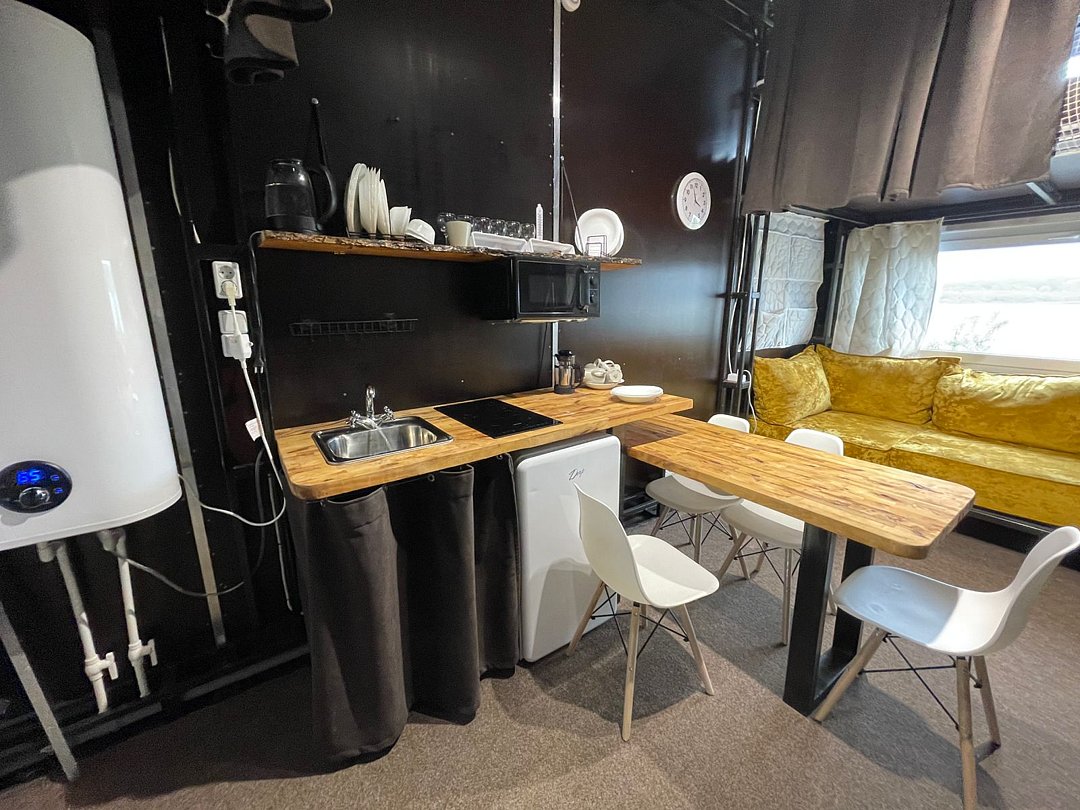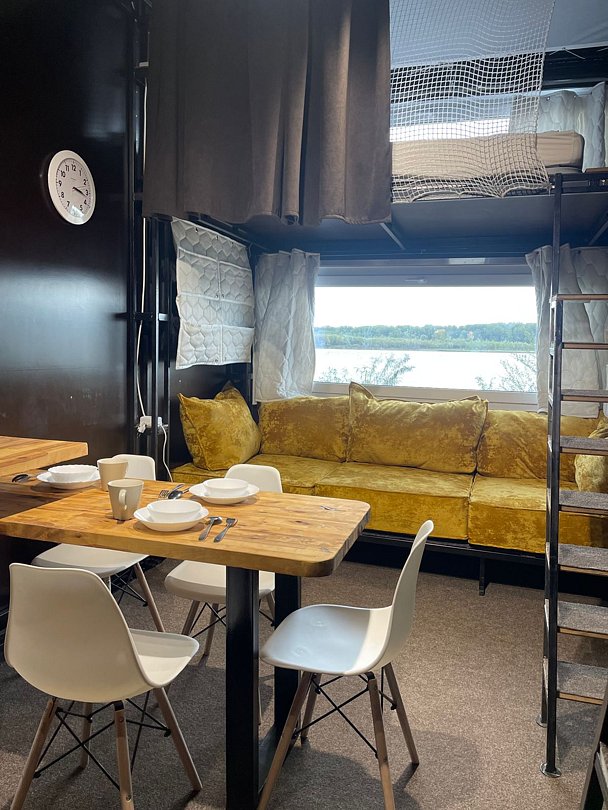 Путешествие в одиночкуЭко-отель на природеЕздила в командировку. Выбирала отель там, где поменьше шума, хотелось отдохнуть от городской суеты. Бронировала через интернет, внесла предоплату, приехала, меня уже ждали, сразу заселили. Не пожалела, место отличное. Рядом река и парк. На территории спокойно, очень красиво и необычно. Есть мангалы, беседки, офура, сауны, есть большая беседка, где можно устроить праздник. Есть интересный номер в контейнере, маленький, но очень уютный, окна до самого пола. В гостинице чисто, цветы на окне, в номере есть все необходимое, душ с теплой водой, телевизор, чайник и посуда. Накормили горячим завтраком, с вечера спросили, когда мне будет удобно. Персонал вежливый и внимательный, администратор ответила на все вопросы, рассказала, как сориентироваться в городе. Рядом с гостиницей два кафе и шашлычка, чуть дальше несколько супермаркетов, банк, остановки автобусов. Мне очень понравилось, обязательно приеду сюда еще.