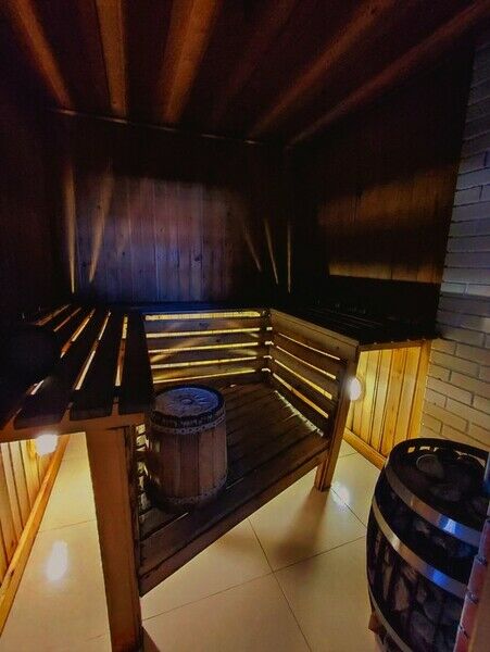 В доме: 4 спальных места, теплые полы, столовые зоны, русская баня. Парилка —1000 ₽ за 3 часа, чан — 4000 ₽ / 3 часа.