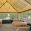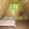 - В домиках есть двуспальные кровати, постельные принадлежности, стол и стулья.