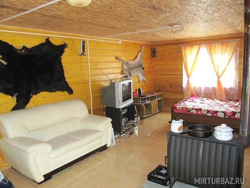 - Кухонная зона, спальные места, телевизор, холодильник. Дом с печным отоплением.