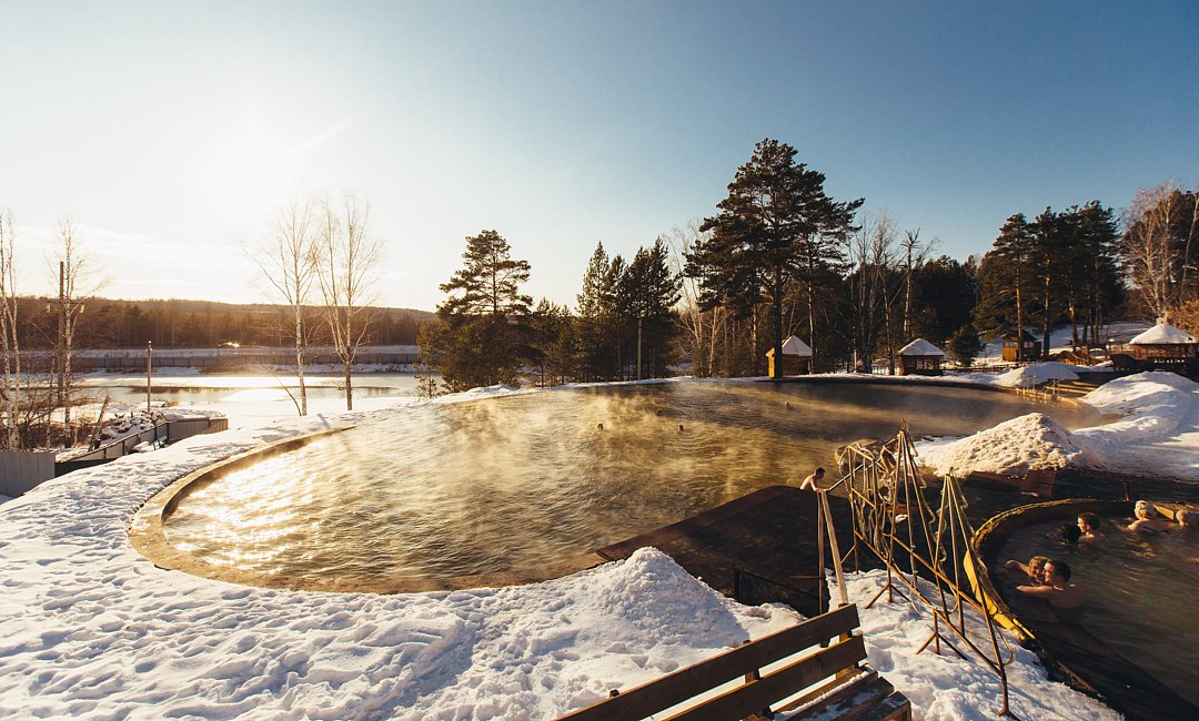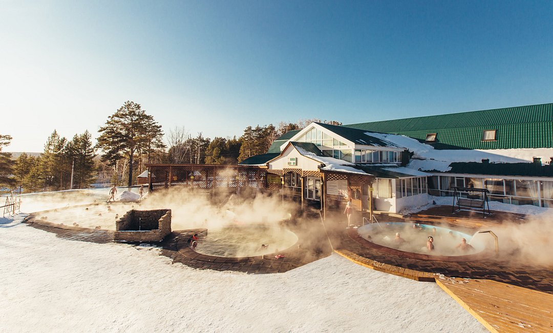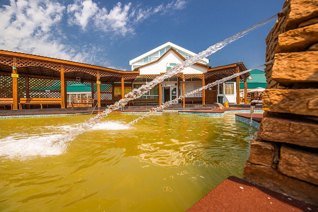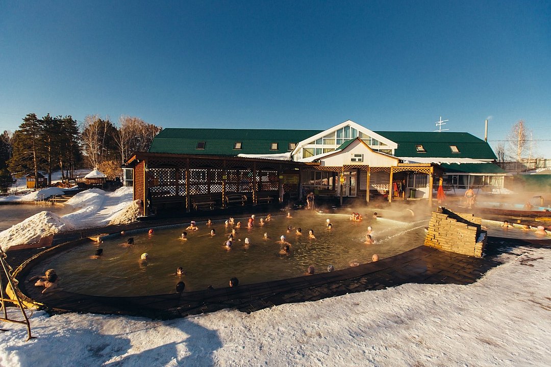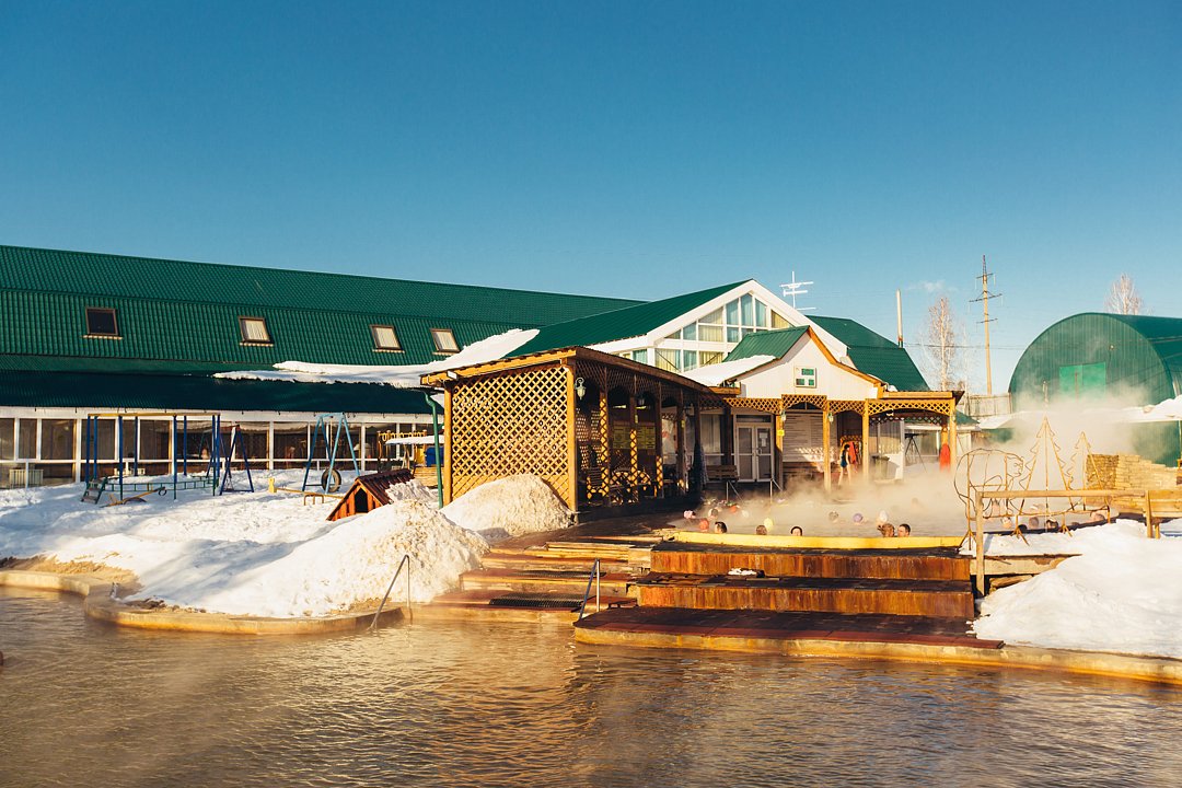 - после шумного банкета можно расслабиться в бане и горячем источнике недорого;