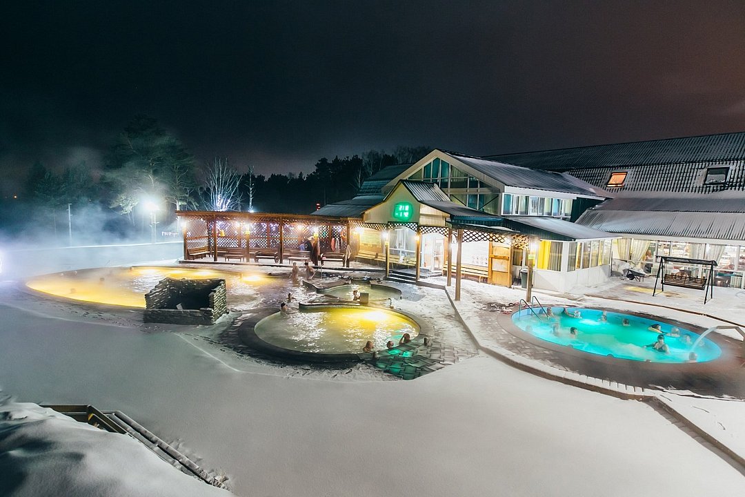 Клуб располагает уникальным термальным минеральным источником. Гостям несколько открытых термальных бассейнов. Также к услугам отдыхающих финские сауны, инфракрасная сауна, хаммам, кедровые фитобочки, раздевалки с индивидуальными шкафчиками, комната отдыха и бильярд. По желанию можно заказать массаж.