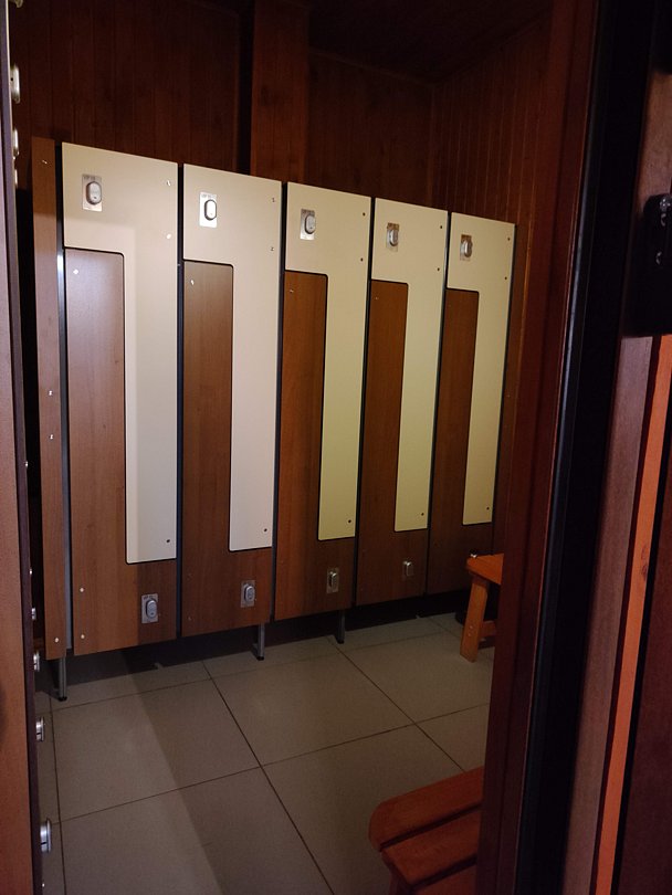 Это отдельная раздевалка, с индивидуальными шкафчиками, вместимостью на ограниченное количество человек. Имеется своя сауна, в которой можно париться вениками, джакузи с минеральной водой, душевые кабинки, сан узел, бодрящие обливные ведра. Для развлечений есть бильярд, телевизор, акустическая система. Также есть большой дубовый стол на компанию, еду можно заказывать из ресторана.