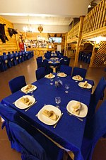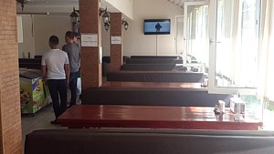Зал рассчитан на 50 человек, поэтому кафе часто бронируют для проведения банкетов. Здесь все предусмотрено для мероприятий: можно подключить микрофоны, мощные акустические системы, установить цветомузыку (оборудование предоставляют сами клиенты).