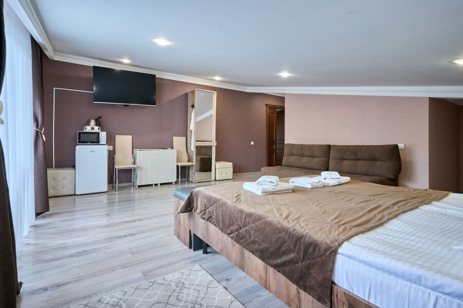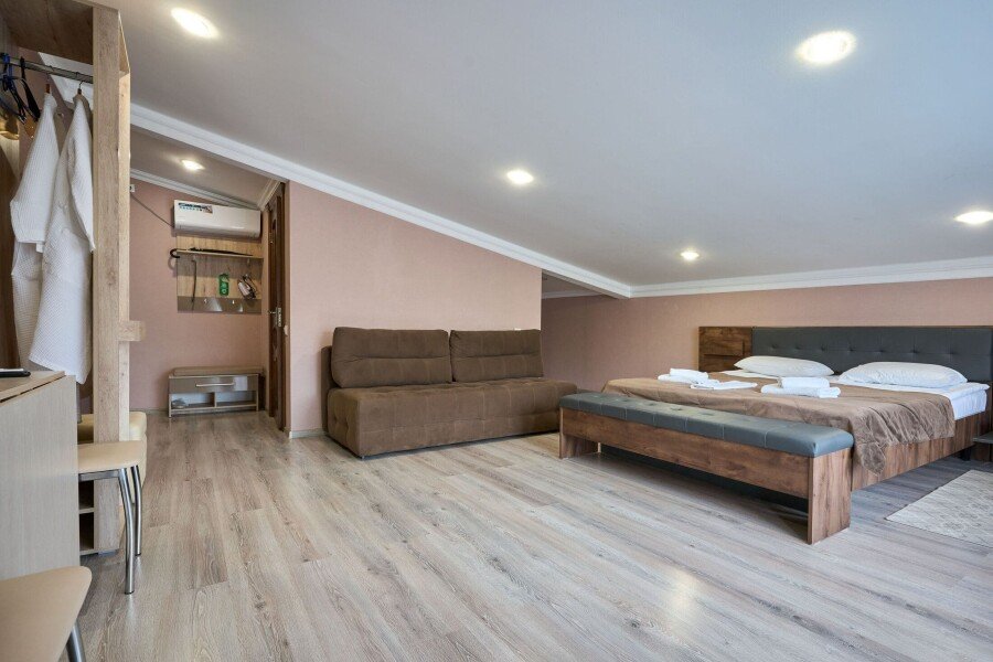 Номер комфорт, площадью 35 кв.м, вместимостью до 4 человек.