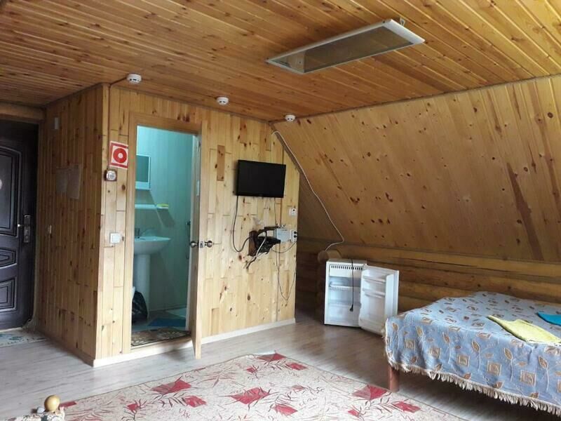 В номере: одна односпальная и одна полуторная кровать, вентилятор, отопление, стол, стулья, душ, туалет, телевизор с плоским экраном, чайник, холодильник.