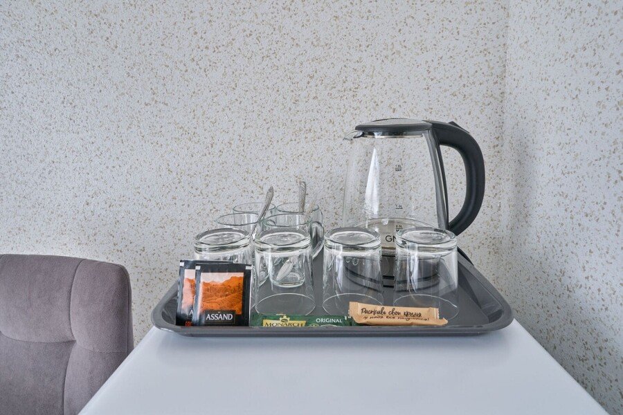 Номер состоит из спальной, ванной комнаты и балкона. В номере есть телевизор, стол, стулья, мини-холодильник, прикроватные тумбочки. Ванная комната с раковиной и душем, также имеются индивидуальные наборы косметических средств для гостей. Отопление. Комфортную температуру в летнее время обеспечивает сплит система кондиционирования, на втором этаже, уточняйте.