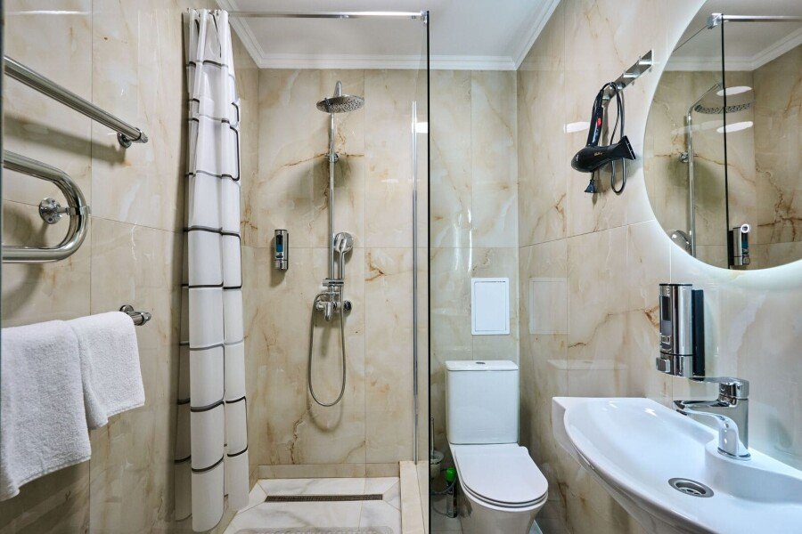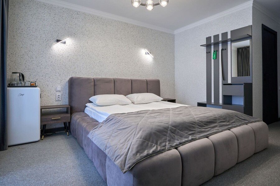 Номер состоит из спальной, дополнительной комнаты, ванной комнаты, есть номера с балконами или без. В номере есть телевизор, 2 мягких стула, стол, мини-холодильник, чайный набор, шкаф, прикроватные тумбочки. Ванная комната с раковиной и душем, также имеются индивидуальные наборы косметических средств, тапочки и халаты для гостей. Есть центральное отопление. Комфортную температуру в летнее время обеспечивает сплит система кондиционирования.