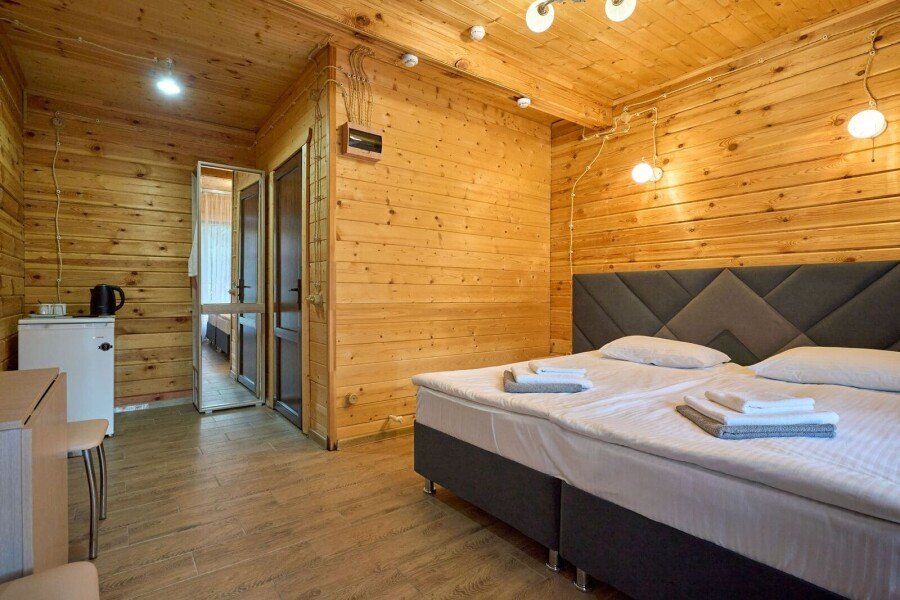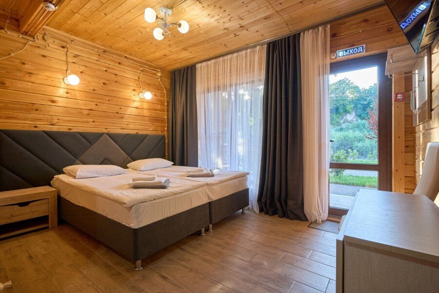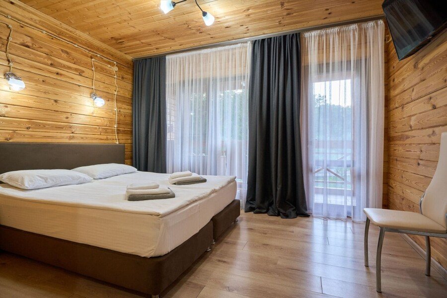 Для проживания доступны две категории номеров, оборудованных для комфортного проживания с видом на горы, лес или реку в зависимости от выбранного номера.