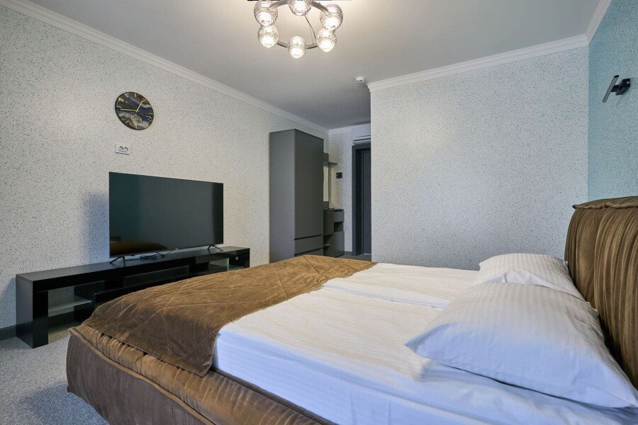 Номер категории «Комфорт» с двумя комнатами влюбляет с момента открытия двери. Спальное место представлено большой кроватью или с двумя кроватями на выбор в одной комнате, а также диваном-кроватью с ортопедическим основанием в другой комнате.
