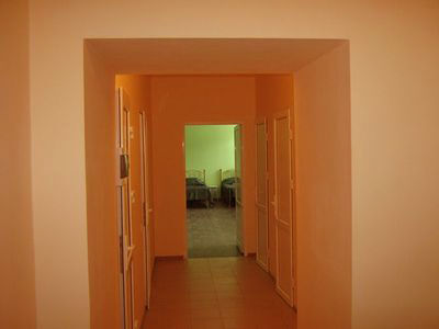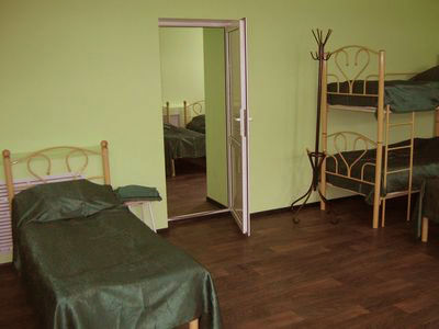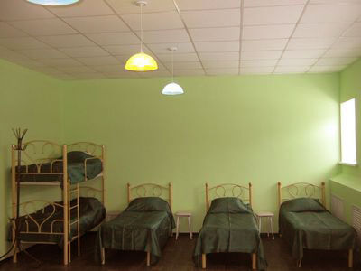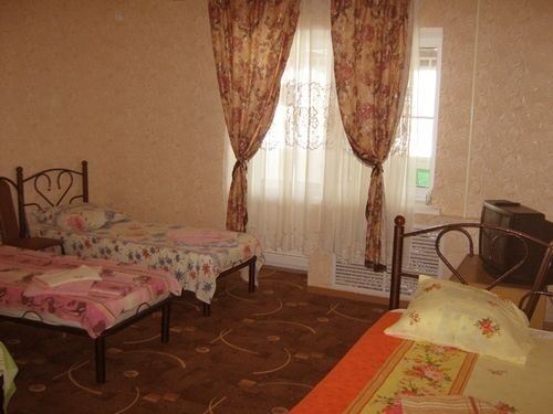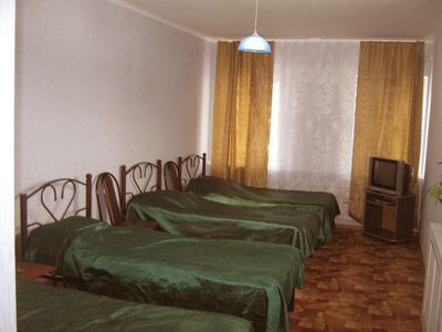 Есть номера с двумя односпальными и одной двуспальной кроватями, с/у в номере.