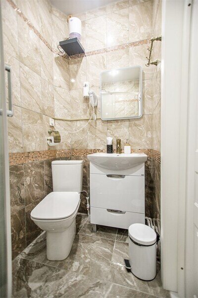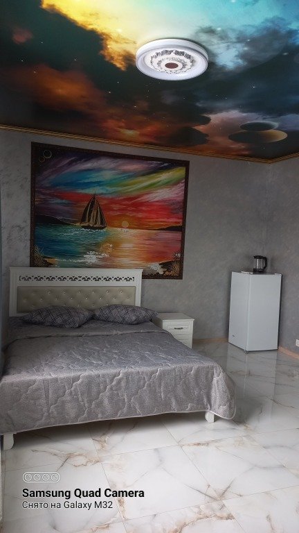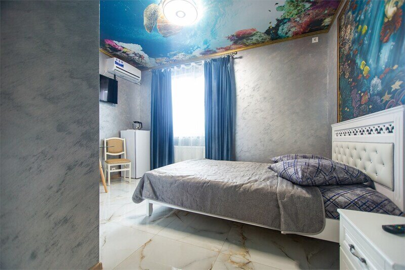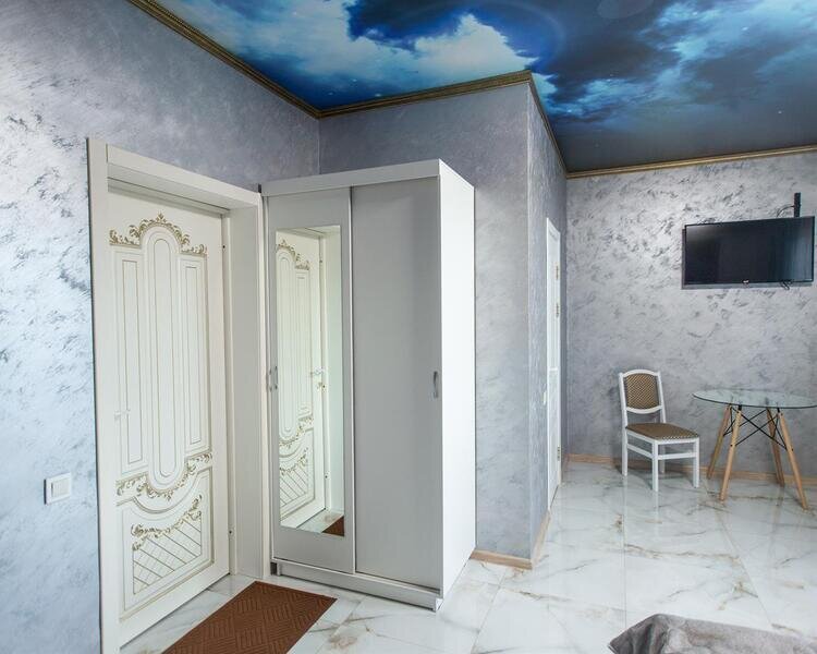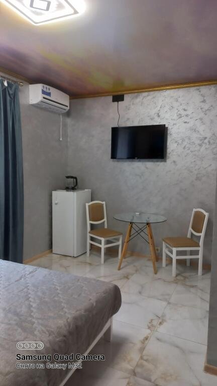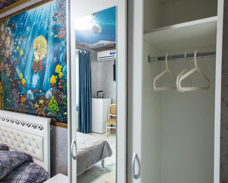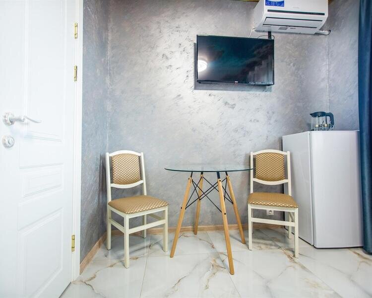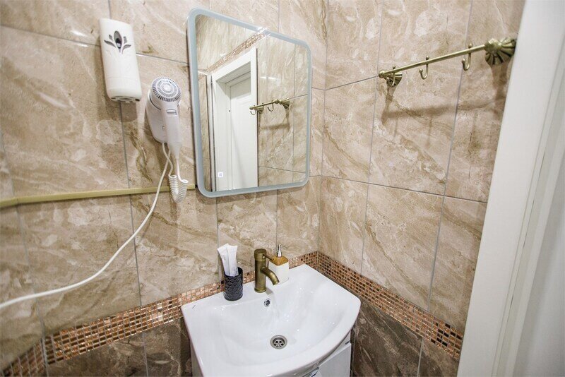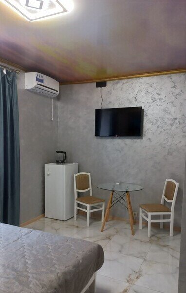 В номере есть всё самое необходимое для комфортного проживания халаты, тапочки, полотенца, средства личной гигиены, фен, холодильник, тв, кондиционер, чайник.