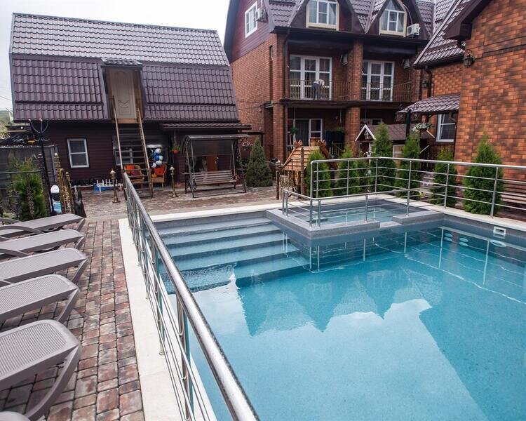 Вас ждёт проживание с уютных номерах, тёплый бассейн, баня, услуги массажа и прокат велосипедов и самокатов на территории.