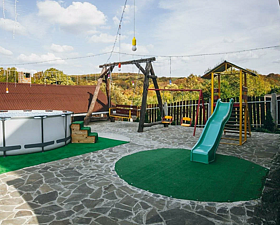 На территории гостевого дома имеется сезонный бассейн и уютная зона для барбекю среди изумрудного сада. Для юных гостей оборудована детская площадка с качелями и горкой. Любители активного отдыха могут воспользоваться услугами экскурсионного бюро и отправиться в увлекательные поездки по живописным окрестностям.