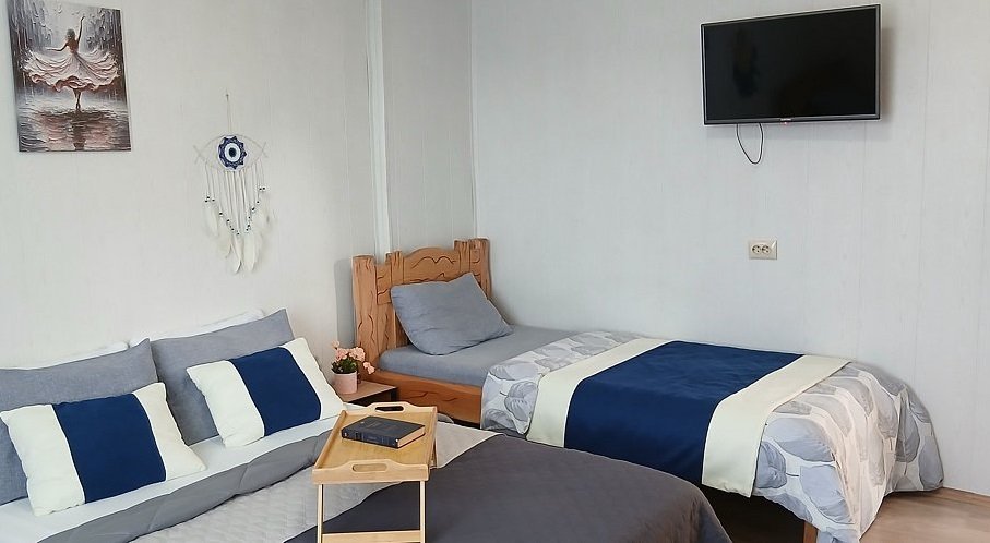 Номера гостевого дома «Иверия» оснащены всем необходимым для комфортного проживания: кондиционером, собственным санузлом, бесплатным Wi-Fi и телевизором. Для удобства гостей также предусмотрена общая кухня, где можно самостоятельно приготовить пищу.