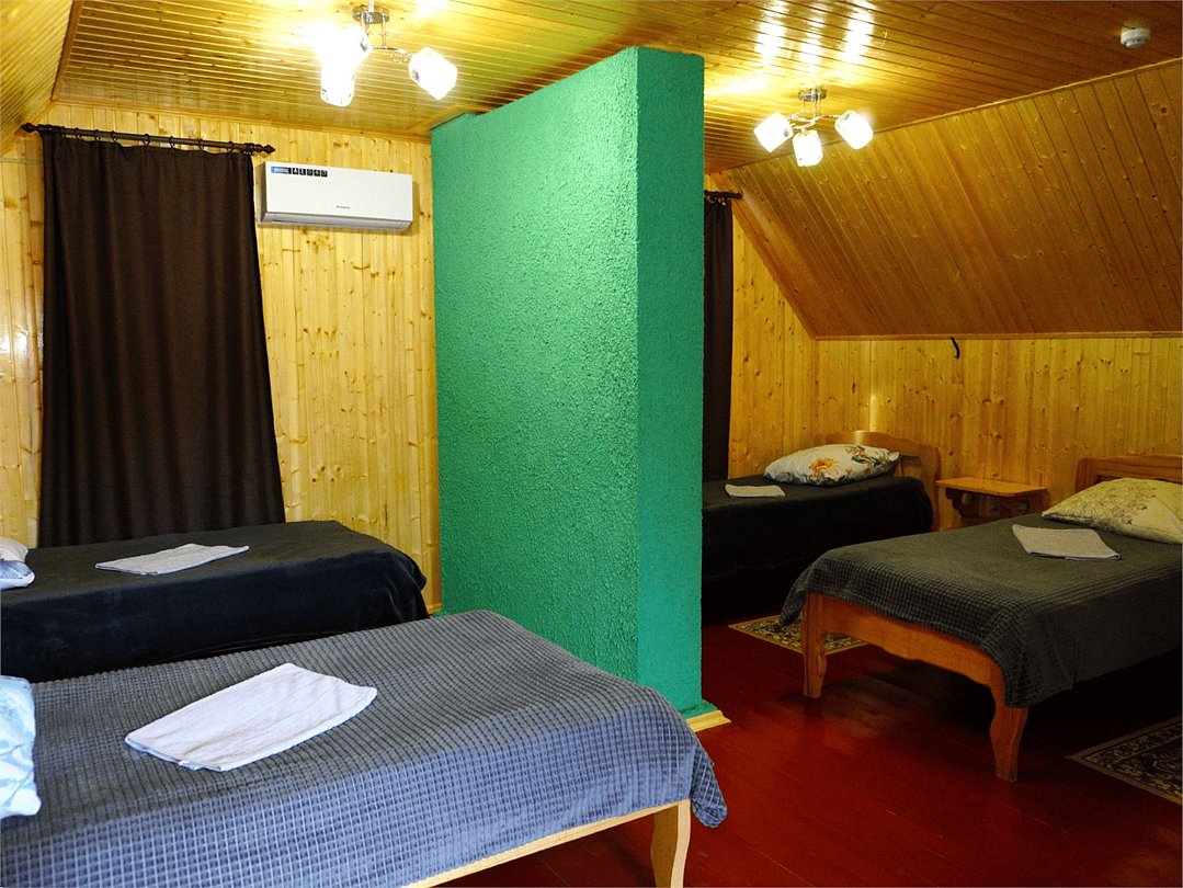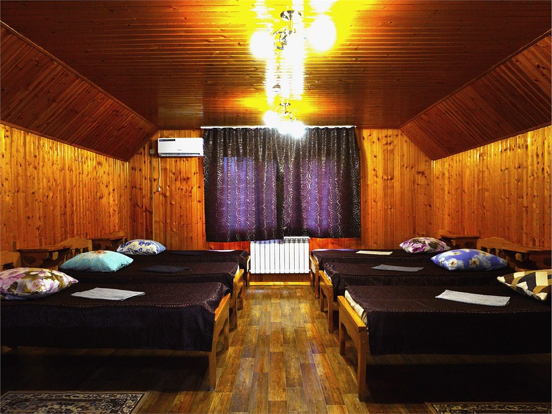 Погрузитесь в атмосферу уюта и комфорта в нашем шестиместном номере. Номер расположен на втором этаже, а из окон открывается завораживающий вид на горы и во двор. В номере есть удобный шкаф для хранения вещей, телевизор, обеденный стол со стульями, электрический чайник, посуда и столовые приборы. Кондиционер и центральное отопление для комфортной температуры в любое время года. На территории также доступны беседки, мангальные зоны, баня. Для детей есть детская площадка, теннисный стол.Услуги и удобства