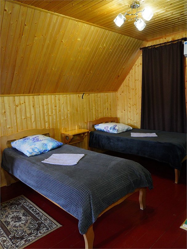 Погрузитесь в атмосферу уюта и комфорта в нашем четырёхместном номере с раздельными кроватями. Номер расположен на втором этаже, а из окон открывается завораживающий вид на горы и во двор. В номере есть удобный шкаф для хранения вещей, телевизор, обеденный стол со стульями, электрический чайник, посуда и столовые приборы. Кондиционер и центральное отопление для комфортной температуры в любое время года. На территории также доступны беседки, мангальные зоны, баня. Для детей есть детская площадка, теннисный стол.Услуги и удобства