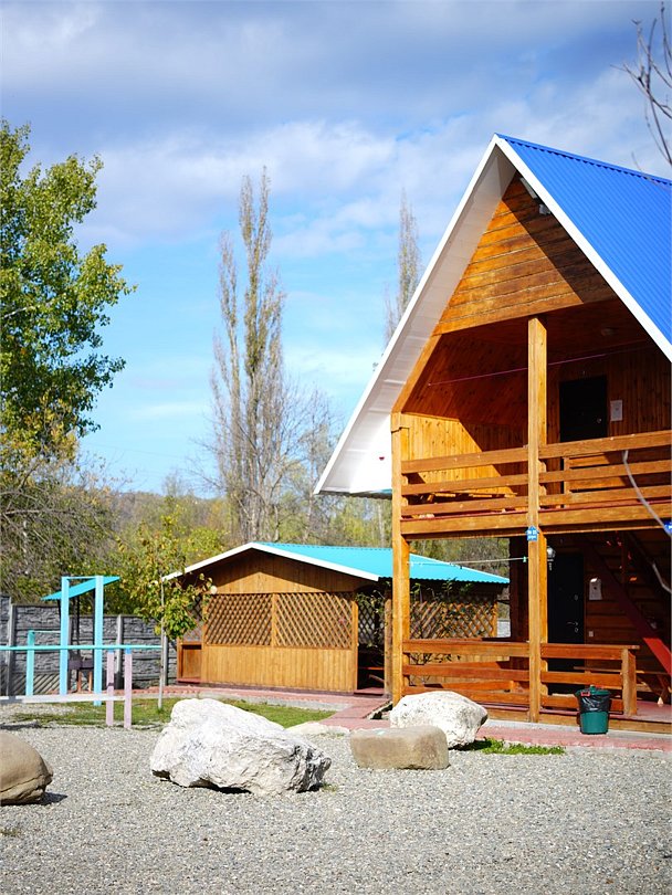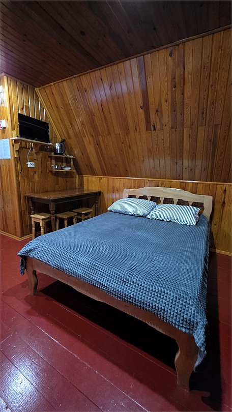 Погрузитесь в атмосферу уюта и комфорта в нашем трехместном номере. Номер расположен на втором этаже, а из окон открывается завораживающий вид на горы и во двор. В номере есть удобный шкаф для хранения вещей, телевизор, обеденный стол со стульями, электрический чайник, посуда и столовые приборы. Кондиционер и центральное отопление для комфортной температуры в любое время года. На территории также доступны беседки, мангальные зоны, баня. Для детей есть детская площадка, теннисный стол.Услуги и удобства