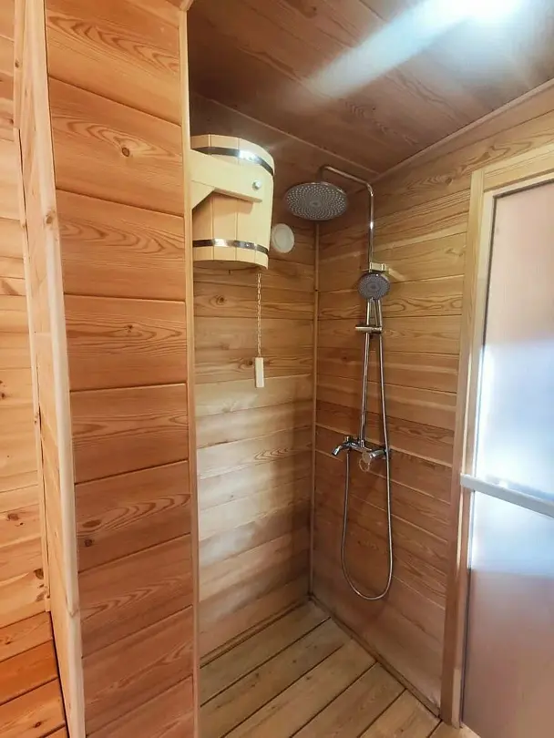 Инфраструктура: зона отдыха, душОсобенности бани: