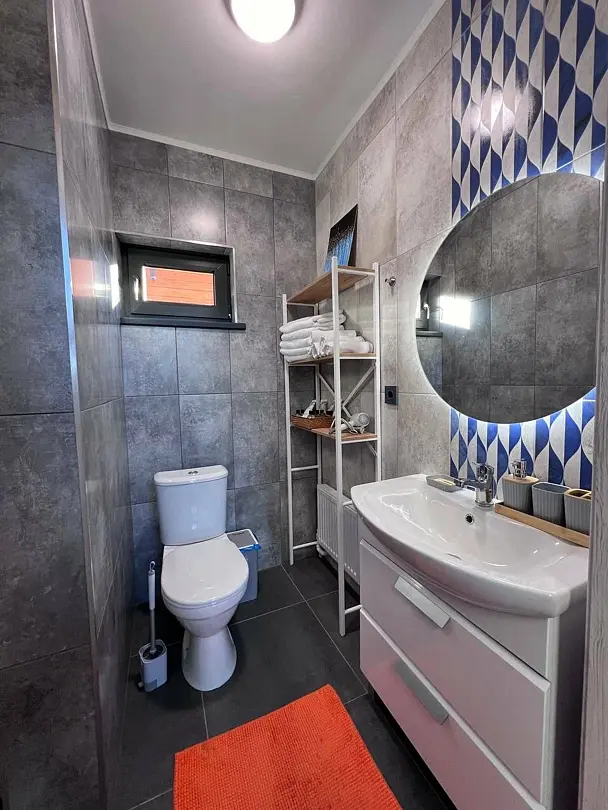 Просторная гостиная с панорамными окнами предлагает великолепный вид. Уютные спальни с двуспальными кроватями обеспечат вам полноценный отдых. Современная кухня оборудована всем необходимым для приготовления ваших любимых блюд, а в ванной комнате вас ждут все удобства. На террасе с зоной барбекю вы сможете насладиться свежим воздухом и красотой окружающей природы.