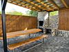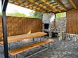 Уютная мангальная зона расположена под навесом рядом с бассейном, где гости могут насладиться процессом приготовления аппетитных блюд на барбекю. После кулинарных подвигов их ждет приятное времяпровождение за столом, окруженным скамейками, идеальное для общих застолий с друзьями и семьей.