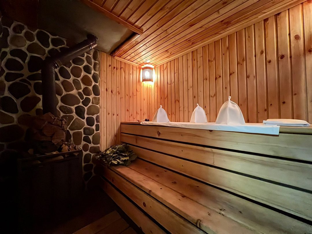 Инфраструктура: зона отдыха, полотенца, шапочки, душМинимальное время аренды: 2 часаГостевой дом предлагает насладиться настоящей русской баней на дровах. Внутри вас ждут уютная парная, зона отдыха с мебелью и душевая, создающие идеальные условия для расслабления. Гостям также предоставляются шапочки и полотенца для максимального комфорта.