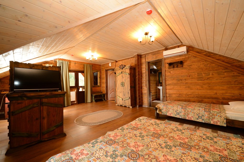 Трехместный семейный номер на 3-м этаже. В номере вас ждет эксклюзивная деревянная мебель. С балкона открывается восхитительный вид на бассейн и реку Белая. 2-х спальная кровать + односпальная кроватьУслуги и удобства