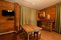 Есть телевизор, чтобы гостям не было скучно. Расположившись здесь большой компанией, вы можете заказать ужин в баню из кафе парк-отеля.