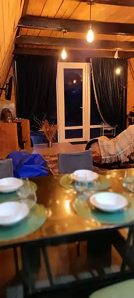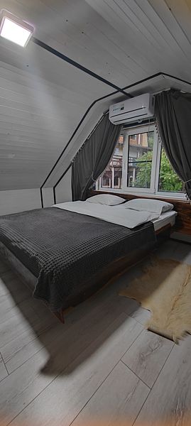 Большой двухэтажный, комфортный дом со вторым светом на 6 человек, со всеми условиями внутри дома. На втором этаже две изолированные спальни и внизу большой холл с раскладным диваном.
