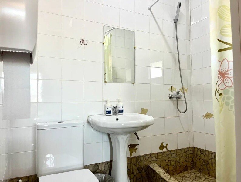 В распоряжении гостей — индивидуальная ванная комната с косметическими принадлежностями и феном