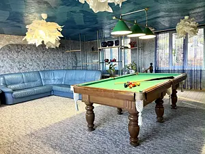 В гостевом доме есть кухня-столовая для свободного приготовления еды и трапезы, бильярдная, детская площадка, уютные беседки и манальная зона. А приятным дополнением будет атмосфера позитива и радушный приём.
