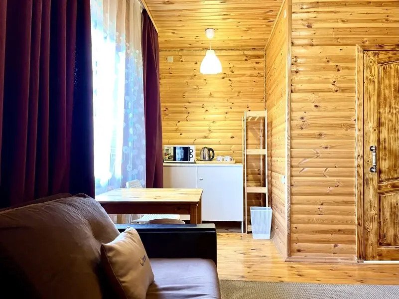 Гостиная зона — диван, который может использоваться как дополнительное спальное место.